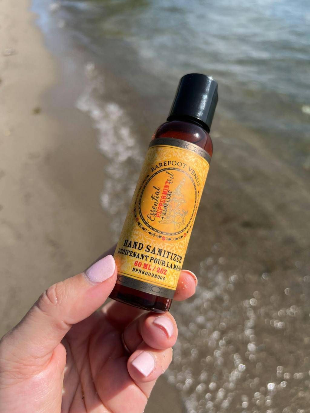 using this hand sanitizer with it's lovely scent transports me away from the every day. soaks in well and not sticky like some other products.